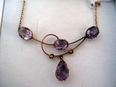 Lot Description:9ct gold amethyst Edwardian necklace