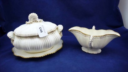 Lot #C46 - Antique Coalport sauce tureen and sauce boat