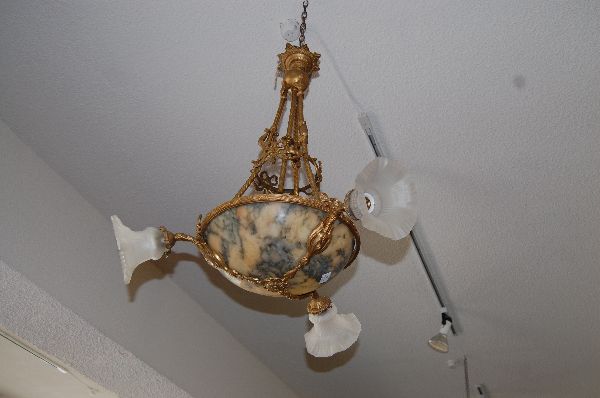 Lot Description:Antique French napoleon III bronze & alabaster four light chandelier