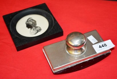 Lot #448 - 2 items: a miniature ink portrait silhouette of a woman in profile