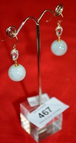 Lot #467 - Pair of aquamarine drop earrings on gold mounts