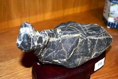 Lot #773 - Unusual Chinese Lingby mythical beast 'Scholar's Rock' body with a cream fissures and crustaceans