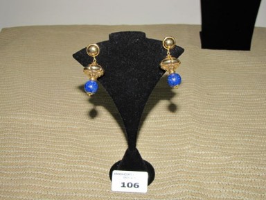 Lot #106 - 18 ct yellow gold and lapis lazuli pair of earrings