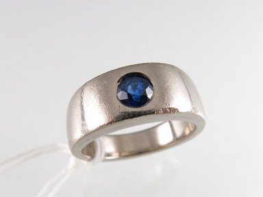 circular-cut sapphire (4.45mm) of lovely colour set in 18ct white gold. Wt 13.4g. -