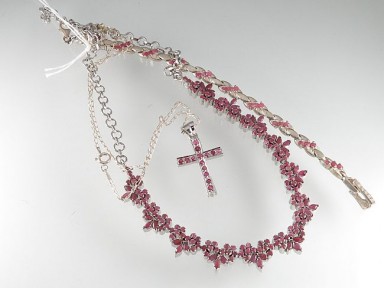 Lot #414 - A Ruby And Silver Necklace, Bracelet And Cross