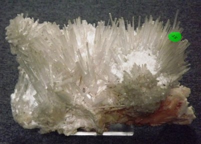 India, Very rarely seen in large specimens are the radiating, colourless crystals of Scolecite from the area around Ahmednagar, India. On this piece the bladed crystals fan out in many directions from the common centre. It measures 17 x2 4 x 8cms. -