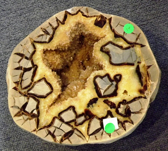 Utah, USA, Utah septarian nodules with their striking combinations of gray, cream, brown and gold colours, are a type of geode mined only from a small area near Oderville, Utah. This is half of such a geode measuring 20 x 21cms.