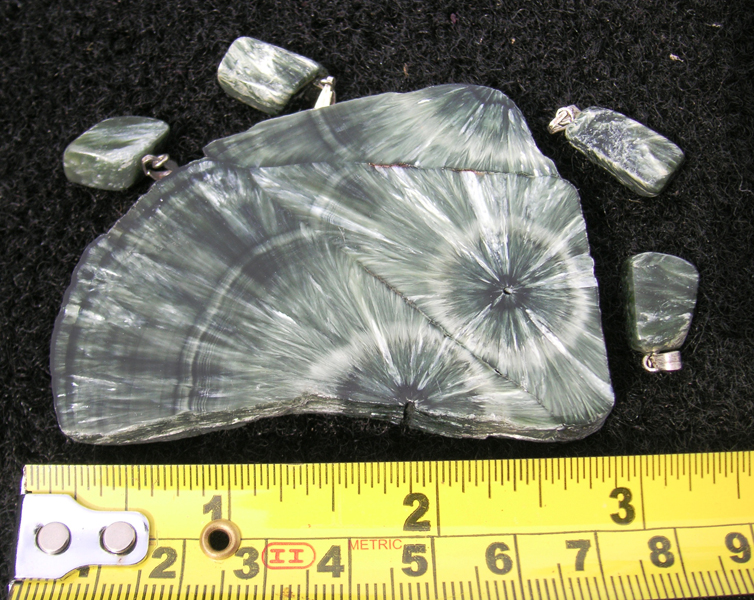 Lot Description:Seraphinite Polished Slsab And Four Pendants