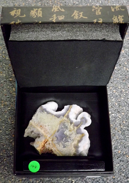 China, This piece comes wonderfully packed in a nice box and a stand for display. The stone itself has a unique shape and is outlined with white with a pale purple centre, that is highlighted by the colourless surroundings. The box measures 18 x 17 x 5cms. -