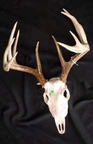 US, Odocoileus Virginianus A common North American Deer also found in Central and South America. It is distinguished by antlers that branch from main beam with curve forwards and inwards. This specimen has an impressive rack of a mature animal. It is a professionally cleaned skull, a by-product of hunting. The 42 x 40 x 35cm piece is ready to be mounted on the wall as is. -
