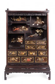 Lot Description:A Japanese hardwood and keyaki wood Shodana, Meiji Period, 1868-1912