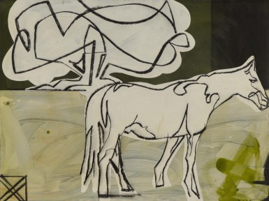 oil, enamel and charcoal on board