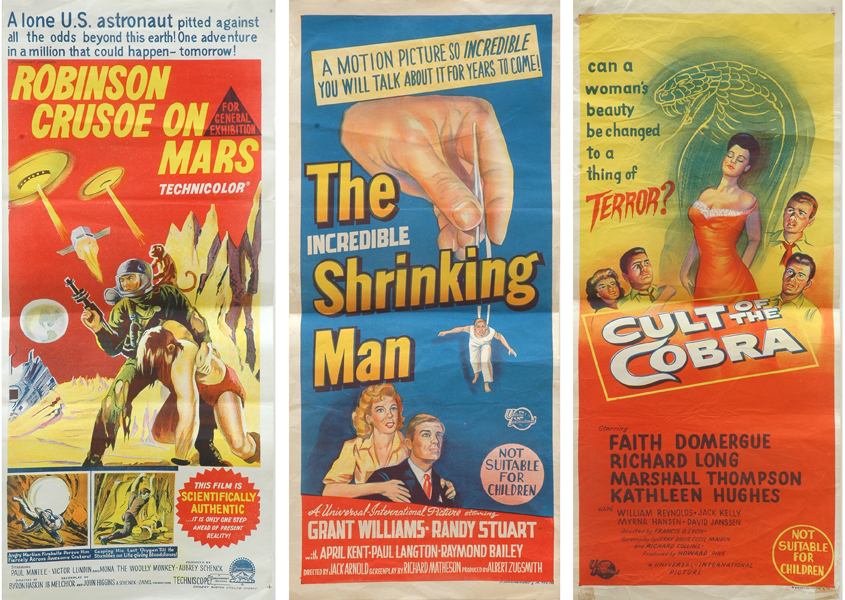 Universal International, 1957, Australian daybill; and 2 other Australian daybills for Cult Of The Cobra, Universal International, 1955; and Robinson Crusoe On Mars, Paramount, 1964, Condition B+ to A- All 76cm x 34cm -