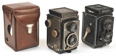 comprising Rolleicord 1 no. 005159 with Zeiss Triotar f4.5 75mm lens in Compur shutter, art-deco, nickel-plated exterior, wear to back plate; and Rolleiflex Old Standard no. 380046 with Zeiss Tessar f/3.5 75mm in Compur Shutter with case, Condition: 4-5 (3) -