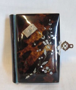 Lot Description:Antique silver inlaid tortoiseshell book