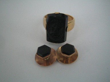 Lot #437 - *A Cameo And 18ct Gold Signet Ring (A/F)(5.9G) And A Pair of Onyx And 9ct Gold Dress Studs (1.7G)