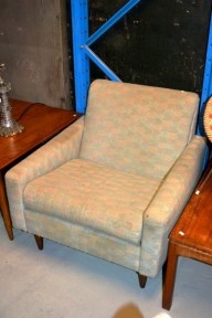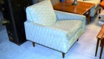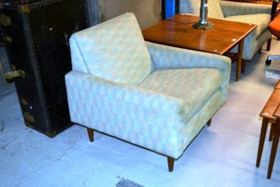 2 armchairs and a 4 seater sofa, square form with teak circular tapering legs -