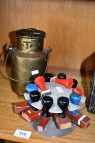 Lot #515 - 2 items: small brass cream urn with hinged lid and swing handle