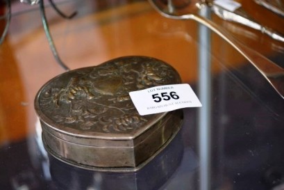 Lot #556 - Antique Chinese silver heart form lidded trinket box