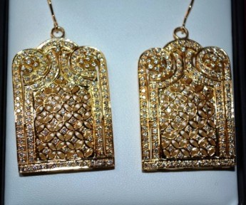 each earring has 158 x 1.5 point diamonds, 2.37 cts each earring, total 4.74 cts, weight = 26.83 grams, stunning rectangular design -
