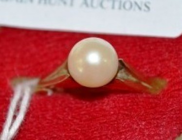 Lot #611 - 9ct gold ring with solitaire pearl setting