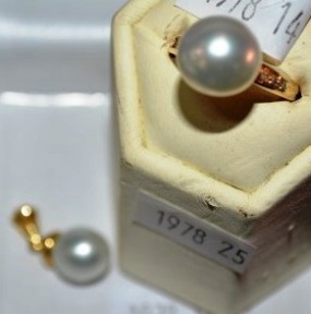 both set with south sea pearl, gold, the ring has diamond set to the shoulders -