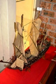 Lot Description:Handbuilt wooden model of an old 3-mast sailing galleon