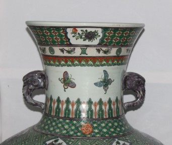 Lot Description:A Large Chinese Famille Verte Mallet Shaped Vase