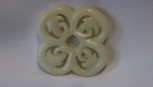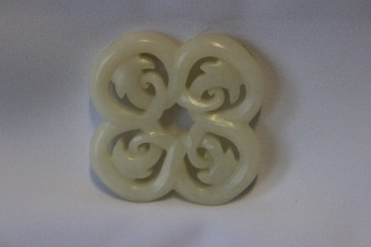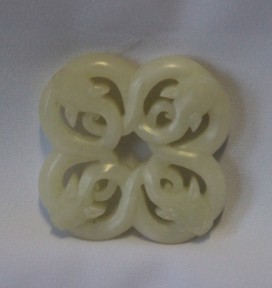 modelled with a pierced lobed shaped body, made up of four pixiu's with maskheads terminals , w 5.15cm -