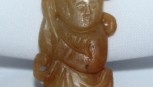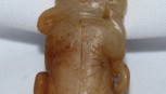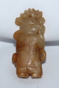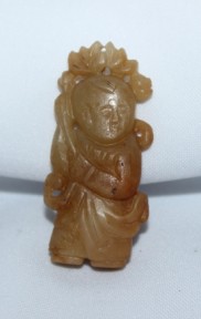modelled as a small boy in traditional robes, large traces of skin , h 4.65cm , possibly heat treated -