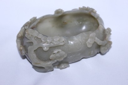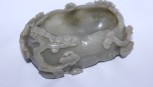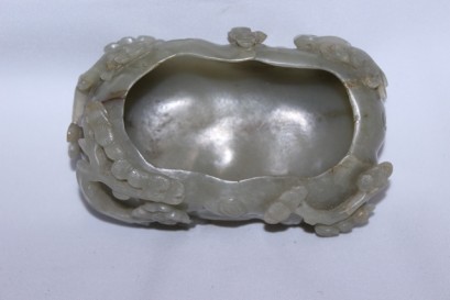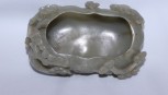 modelled in boat form , carved in relief with various tree branches in full bloom , l13cm possibly heat treated -