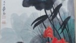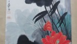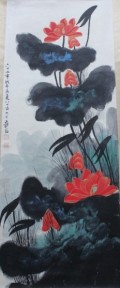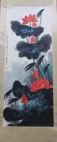 "Lotus flowers" signed upper left in script and a chop, 119cm x 46.5cm -