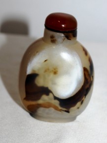 modelled translucent earthy tones with natural geo-metric inclusions , and a slight traces of skin, h 7.85cm -