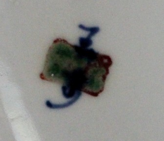 modelled with a shallow body , and decorated with a single figure of a bird, leaf in mouth, resting on a slender tree branch , seal mark to base , d 25.5cm -