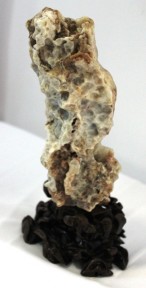 modelled as a mythical creature seated four square , on a hardwood base, h 21cm -