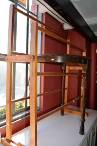 Lot Description:2 items: a pine towel rail (good for shop display use) and an oak demi-lune table