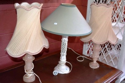 with matching pleated shades together with a white ceramic Italian based table lamp -