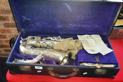 American made, serial no. A M253867L, in fitted hardcase with mouth piece & accessories etc, comes with original receipt, dated 1935 for 49 pounds, 12 shillings & sixpence -