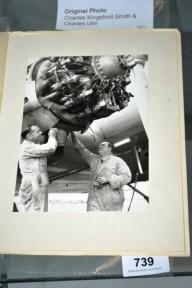 Lot #739 - Original photograph of Charles Kingsford Smith and Charles Ulm working on a plane engine