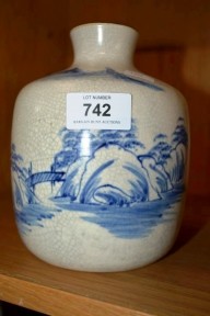 Lot Description:Modern crackle glaze blue and white oriental vase