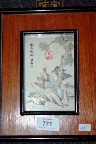 Lot Description:Chinese porcelain plaque of a scholar with calligraphy