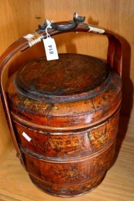 Lot Description:Vintage decorative wooden food carry