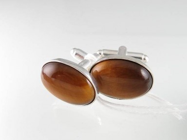 Lot Description:A Pair of Silver & Tiger'S-Eye Twist Bar Sleeve Links