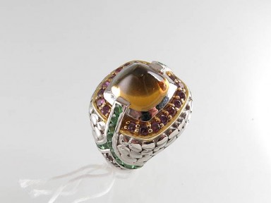 Lot Description:A Citrine Green & Pink Garnet and Cubic Zirconia Cluster Ring