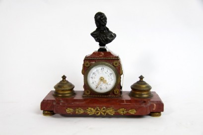 Lot Description:A French rouge marble and bronze ink well by maker P. Dunot