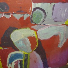 Oil on board. Signed lower right. Titled verso. 122 x 122 cm. Sizing to masonite. -