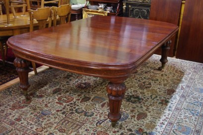 with 3 extension leaves (only one shown in main photo), on turned reeded and fluted legs, a centre support leg is supplied, legs can be removed for transport, 188cm long (with no extension leaves), 350cm long (with 3 leaves), 152cm wide, 76cm high -