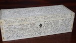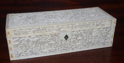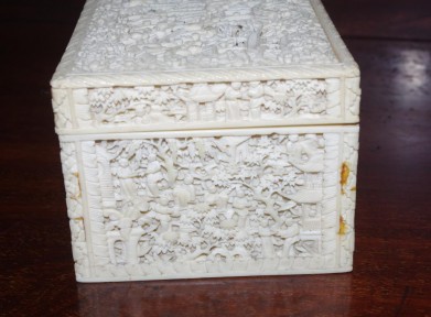 late Qing period, elaborately carved with village scenes, trees, pagodas & boats. -
