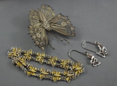 including silver brooch and earrings and a gilt bracelet -