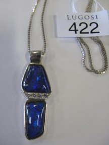 Lot Description:Modern sterling silver and black opal pendant on silver chain
